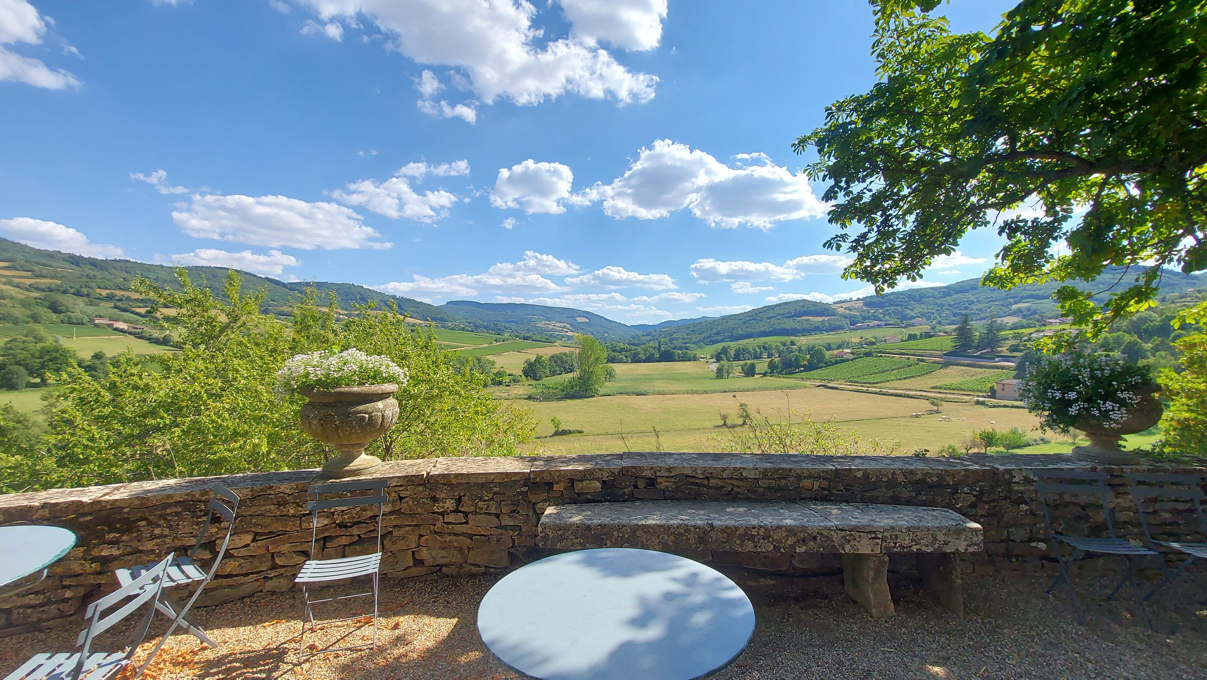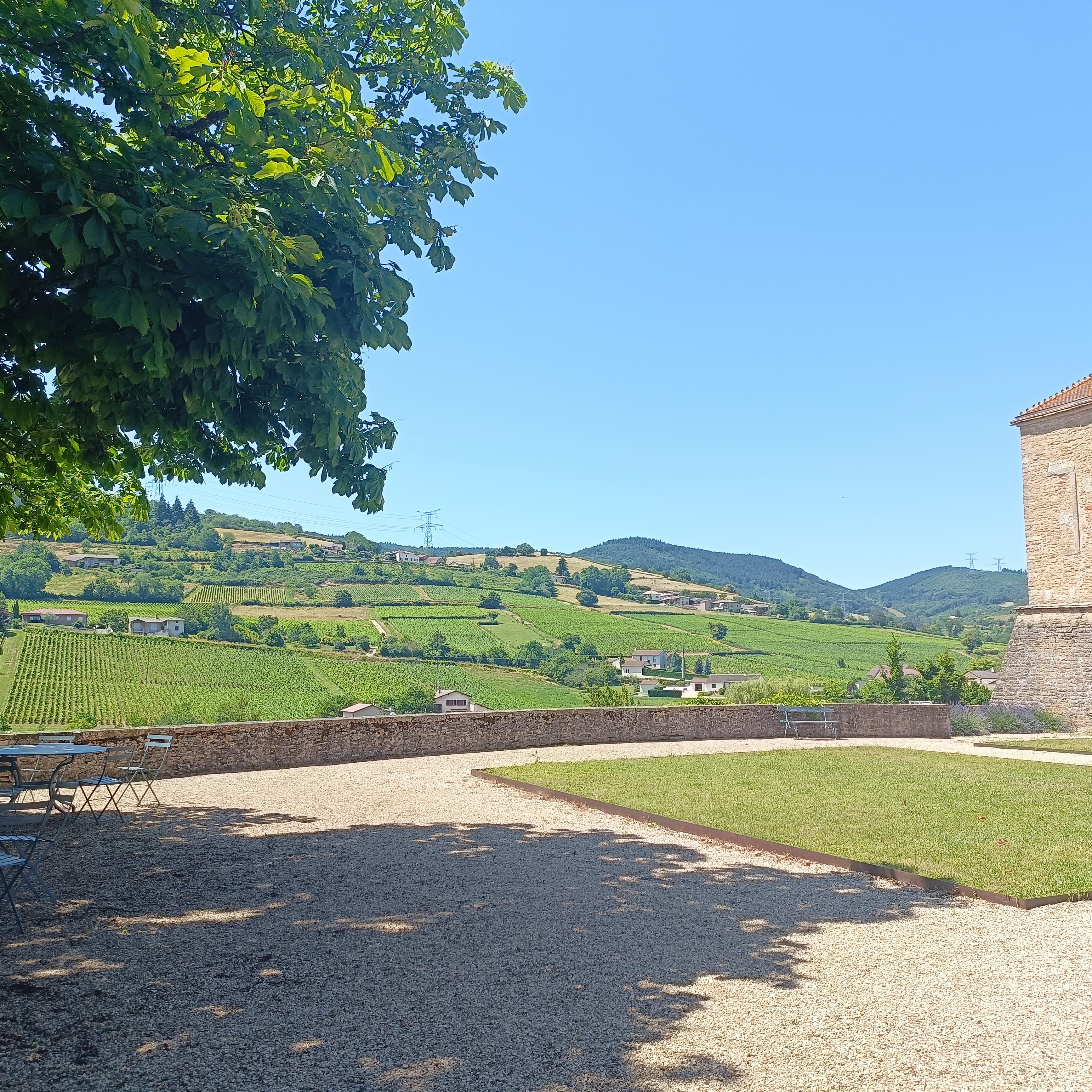 Joli Château entouré de vignes dans le Mâconnais, au calme. La propriétaire des lieux nous a très bien accueilli au petit déjeuner. Très souriante, à pris le temps de discuter sur l histoire de din Château ainsi que de son vignoble. Petit déjeuner très copieux avec des produits locaux. 🥰 Le vin pris en terrasse à régalé nos papilles. La Chambre césarine est fonctionnelle, la literie très bonne. Dommage que nous n avons pas dormi dans le château.