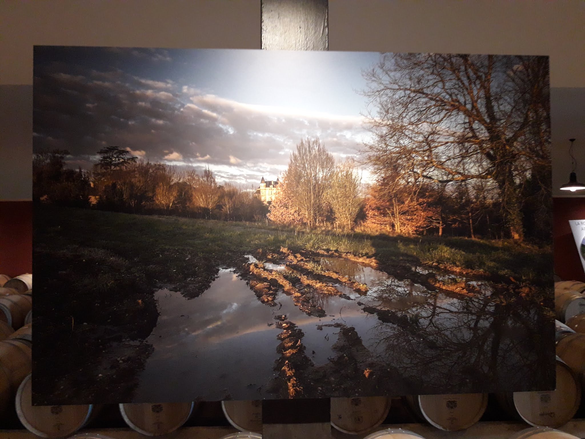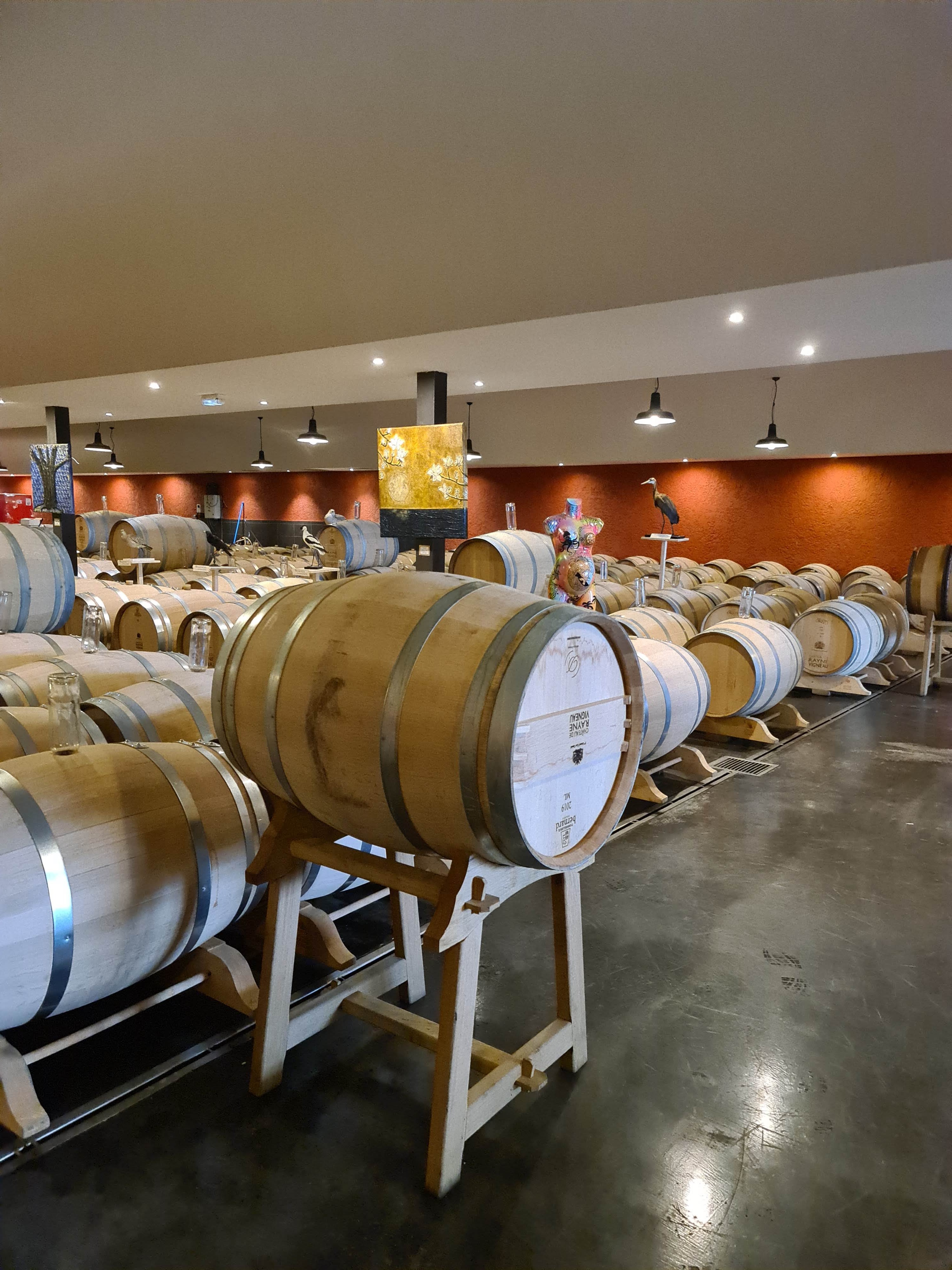 Une visite dégustation nous a permis d'acheter des grands crus en cadeau. Le bâtiment du château ne fait pas partie du domaine viticole. L'élevage en barriques est agrémenté d'une collection d'oiseaux empaillés qui n'ont pas grand chose à voir avec le terroir. La viticulture expliquée ; trois vins proposés lors de la dégustation. Vues sur le domaine.