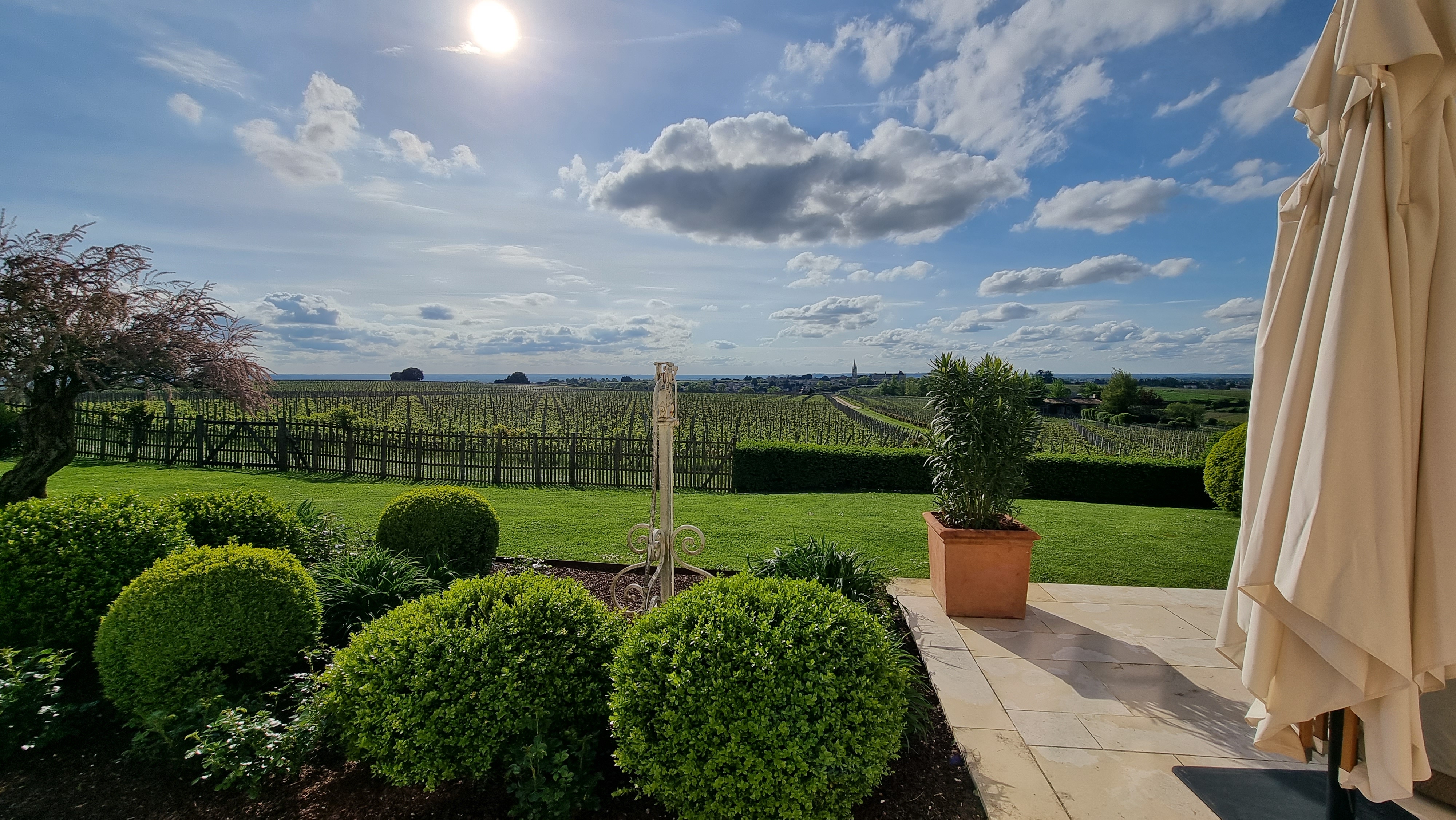 Un endroit incroyable ! Vous n'aurez pas de meilleur paysage sur toute la vallée de St Emilion ! Il faut y séjourner à la suite Le Clocher pour profiter du coucher de soleil sur le village de St Emilion. Le personnel est chaleureux et accueillant, le guide est fantastique et parle couramment l'anglais (des vignobles australiens expérimentés !). La cave conçue m'impressionne vraiment ! La piscine est fantastique... bref pas grand chose de négatif à dire... enfin peut-être un ! Le château d'eau prouvant qu'ils sont au point le plus haut pour avoir la meilleure vue panoramique sur la région n'est vraiment pas la meilleure architecture du spot 🙂
