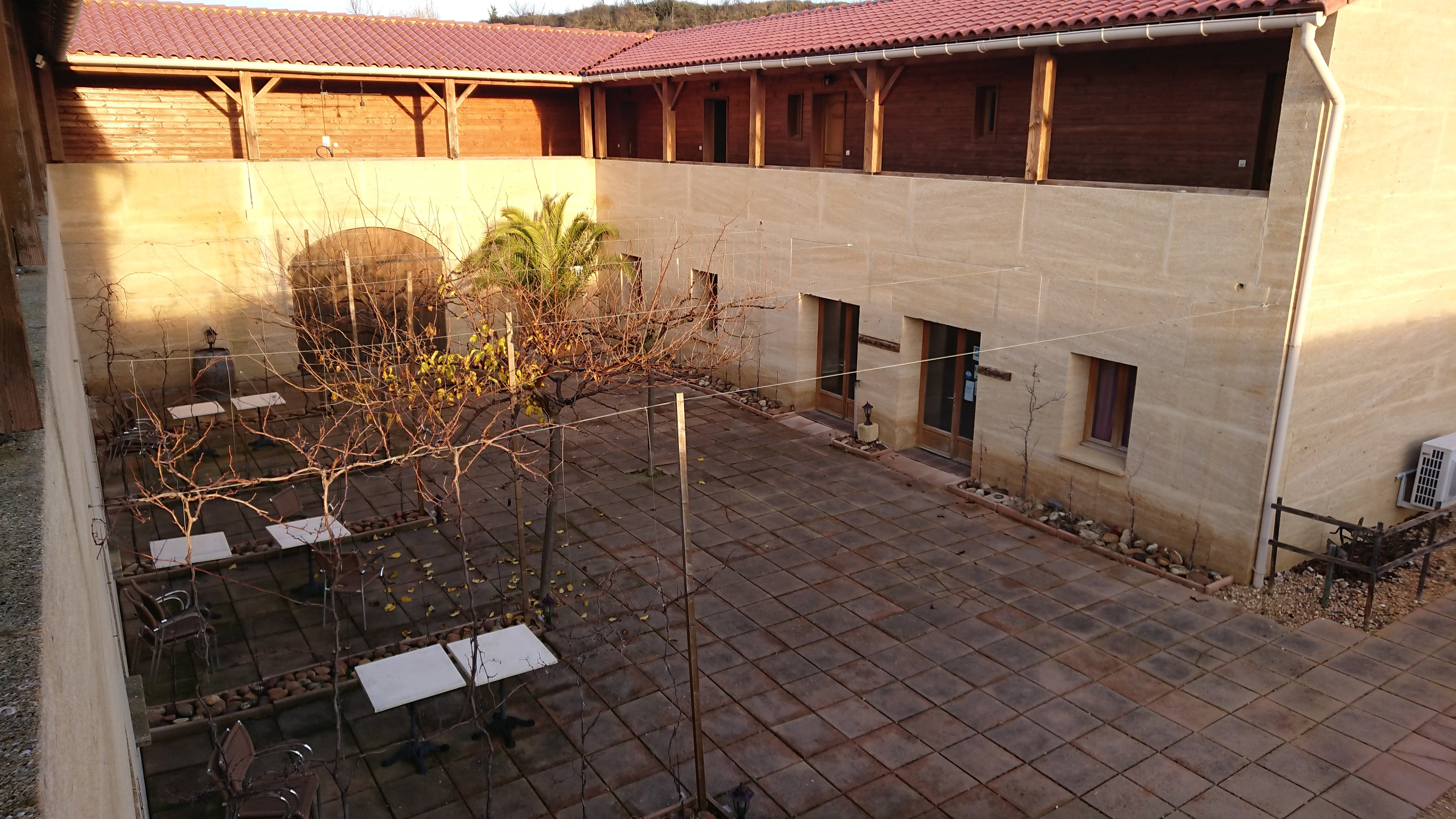 Très jolie bâtisse au milieu des vignes. Grandes chambres spacieuses et bien équipées... Il manque tout de même, un meuble pour poser une valise, des produits douche, sèche cheveux, un tapis de douche et peut être deux ou trois petits plus...🙃 Très bon accueil, pas loin d'Avignon ou de Nîmes... La piscine n'a pas grand intérêt et le petit déjeuner n'est pas très garni...
